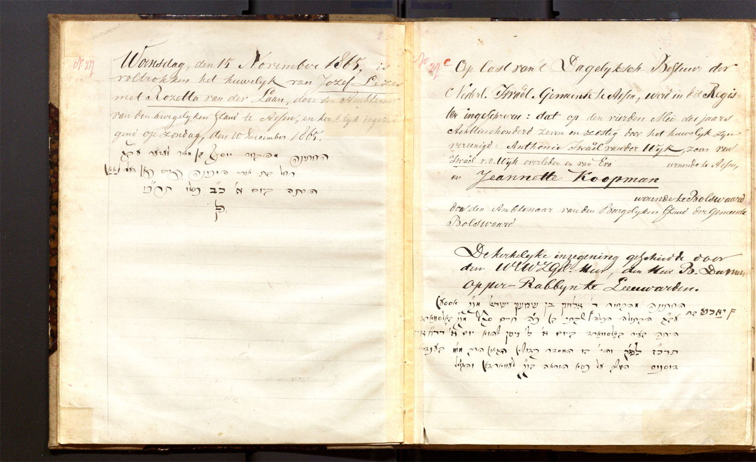| 26.01.1862 | Levi van Leer | Grietje van Messel | ja | |