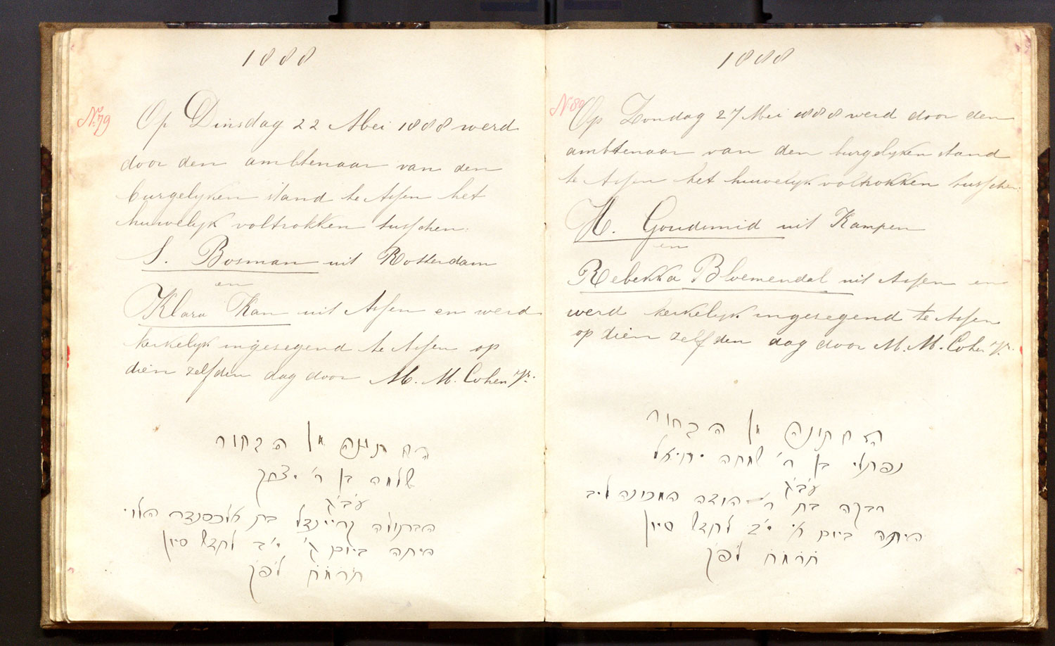| 11.06.1899 | Meijer Cohen | Rozetta Swartenberg | ja | |
