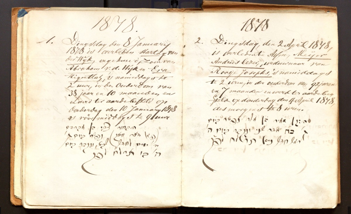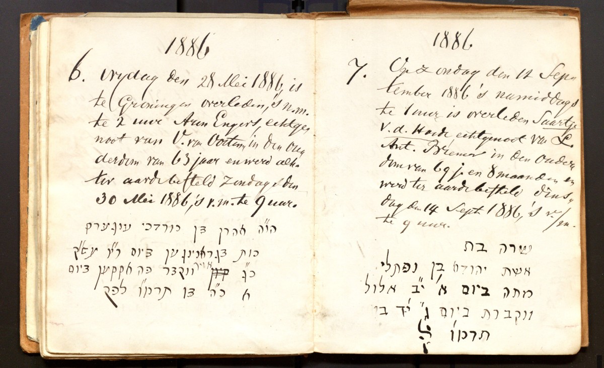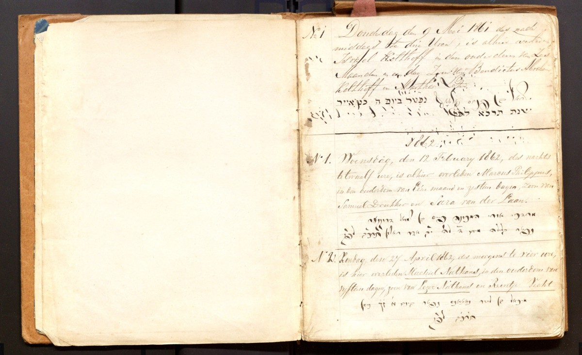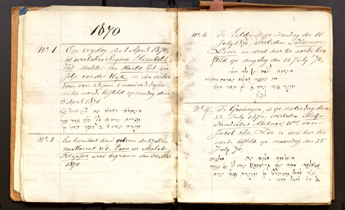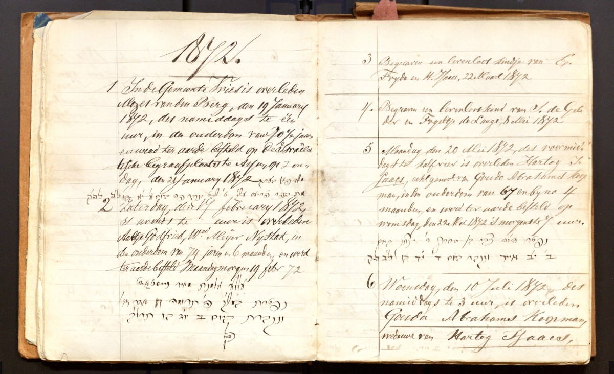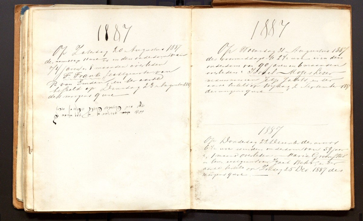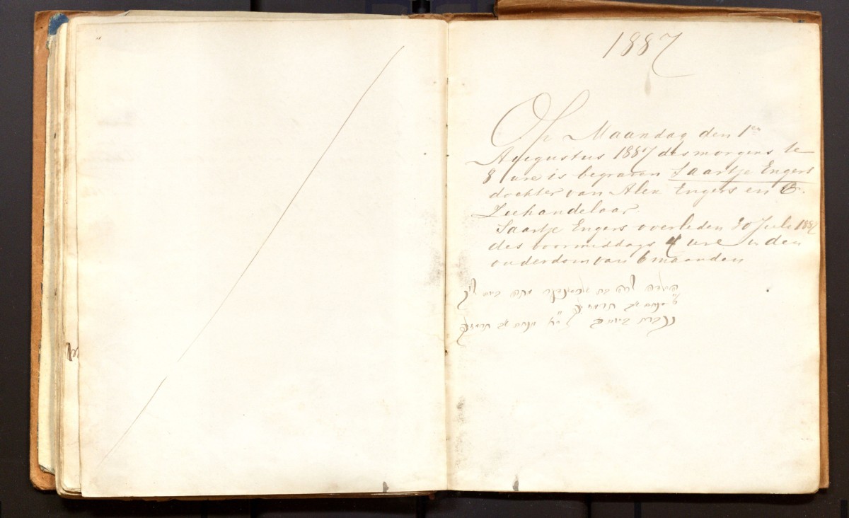 De gescande inhoud van het oudste begrafenisregister, dat zich in het Drents Archief bevindt.