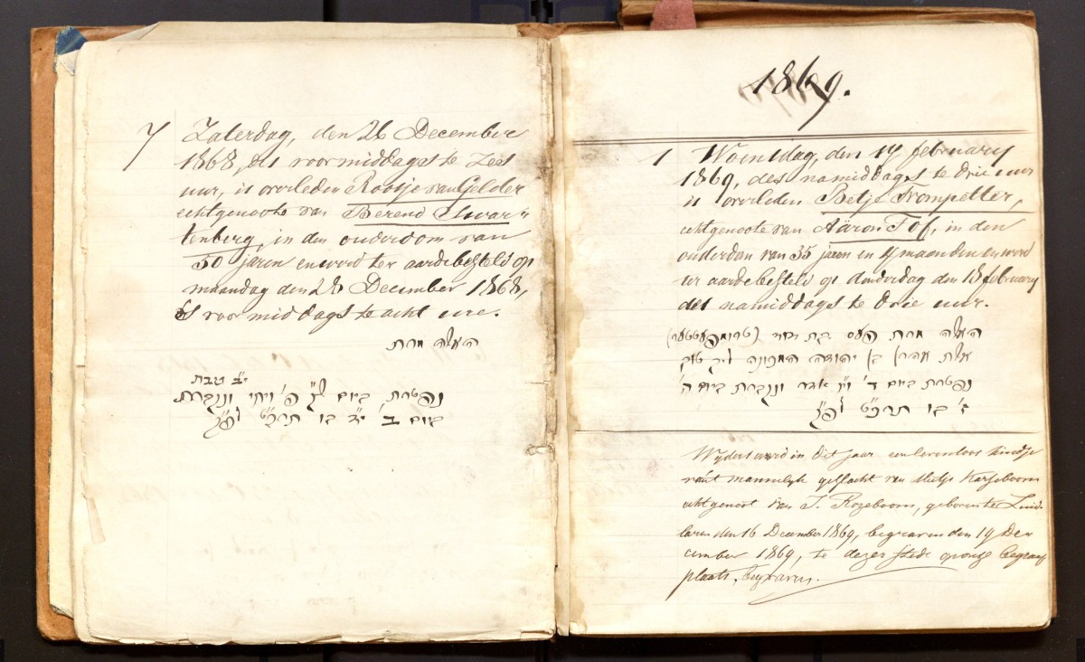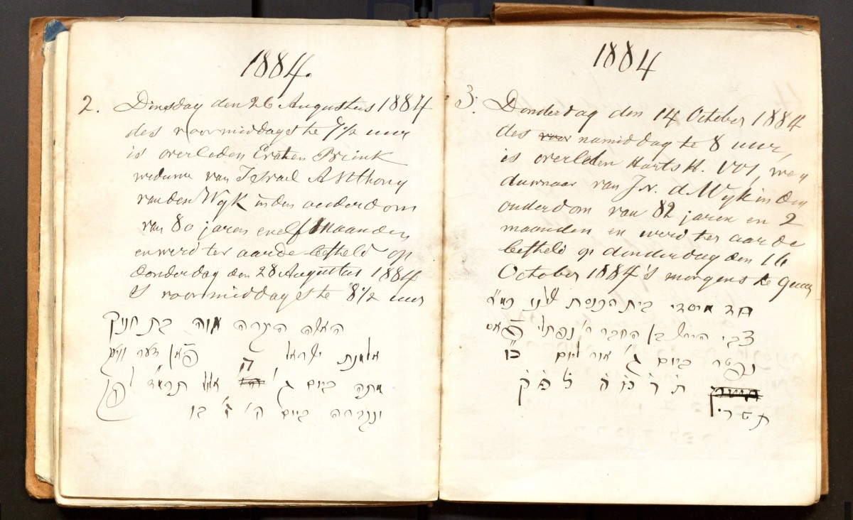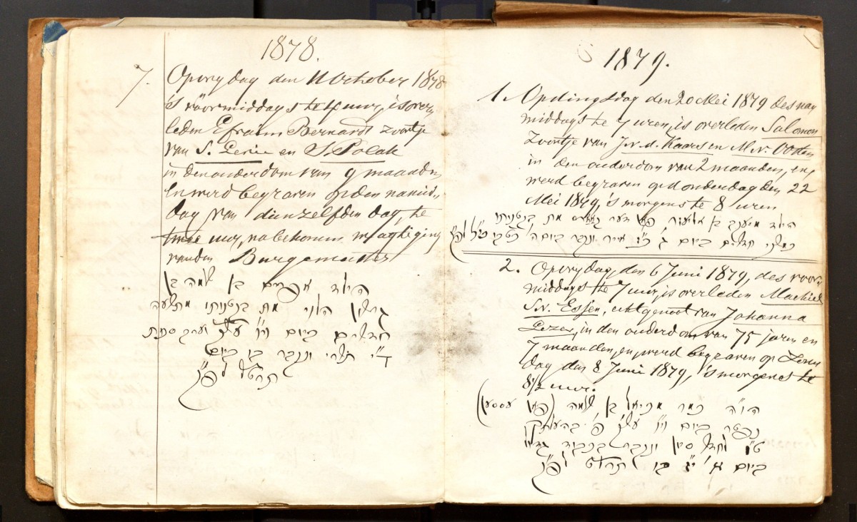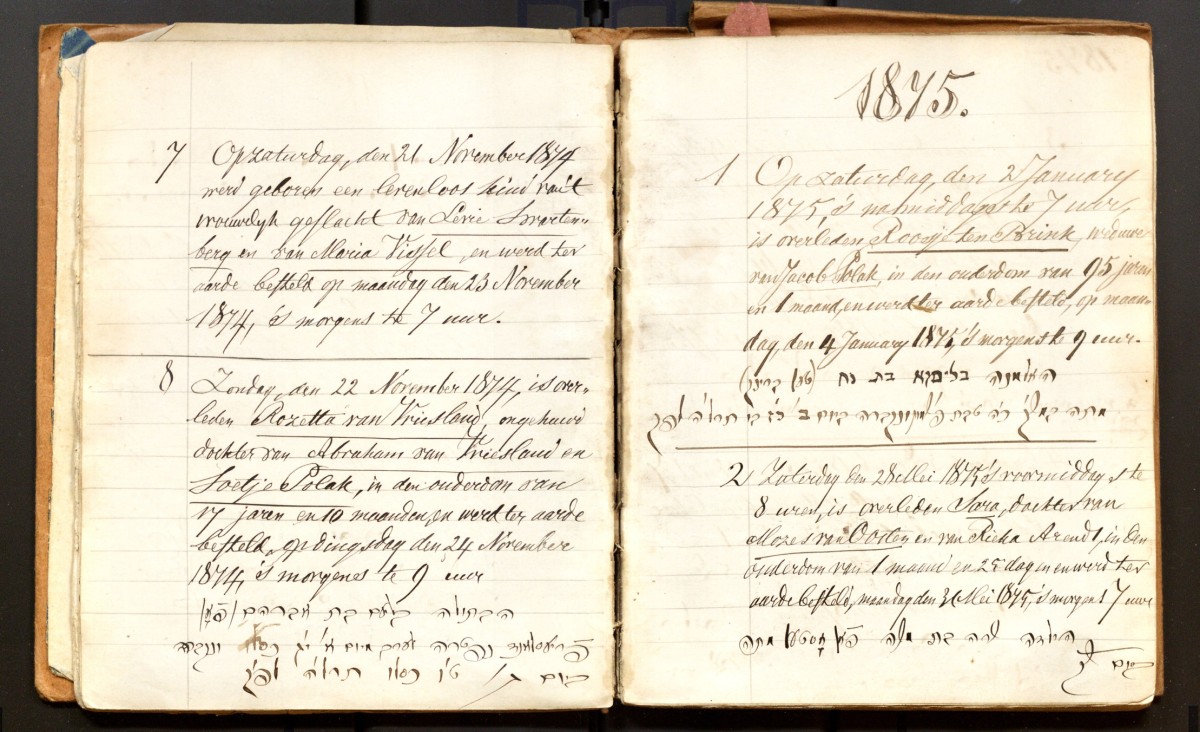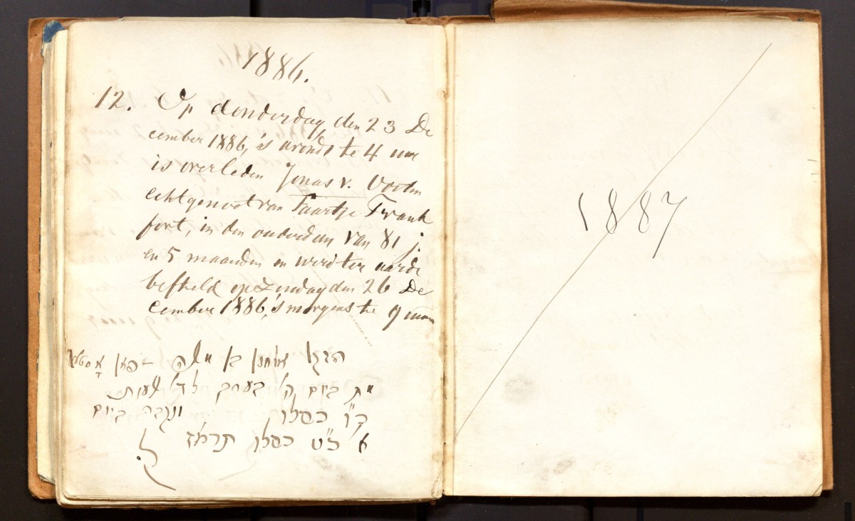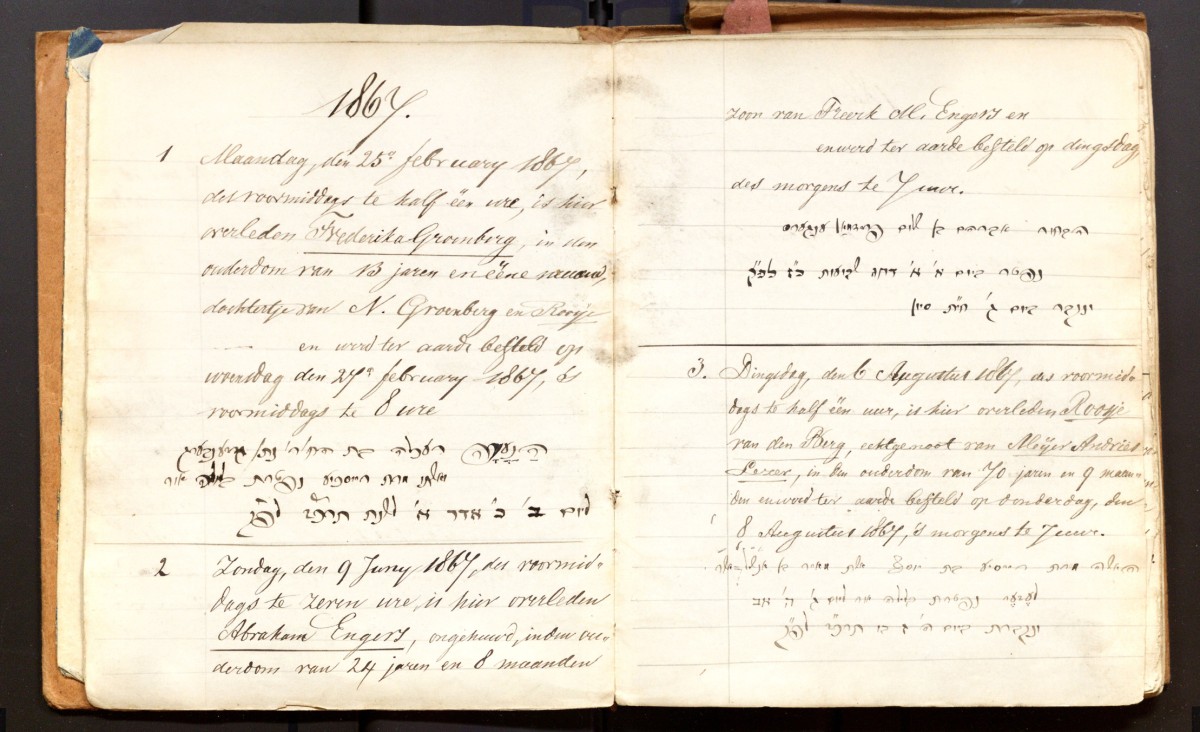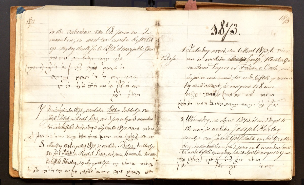 De gescande inhoud van het oudste begrafenisregister, dat zich in het Drents Archief bevindt.