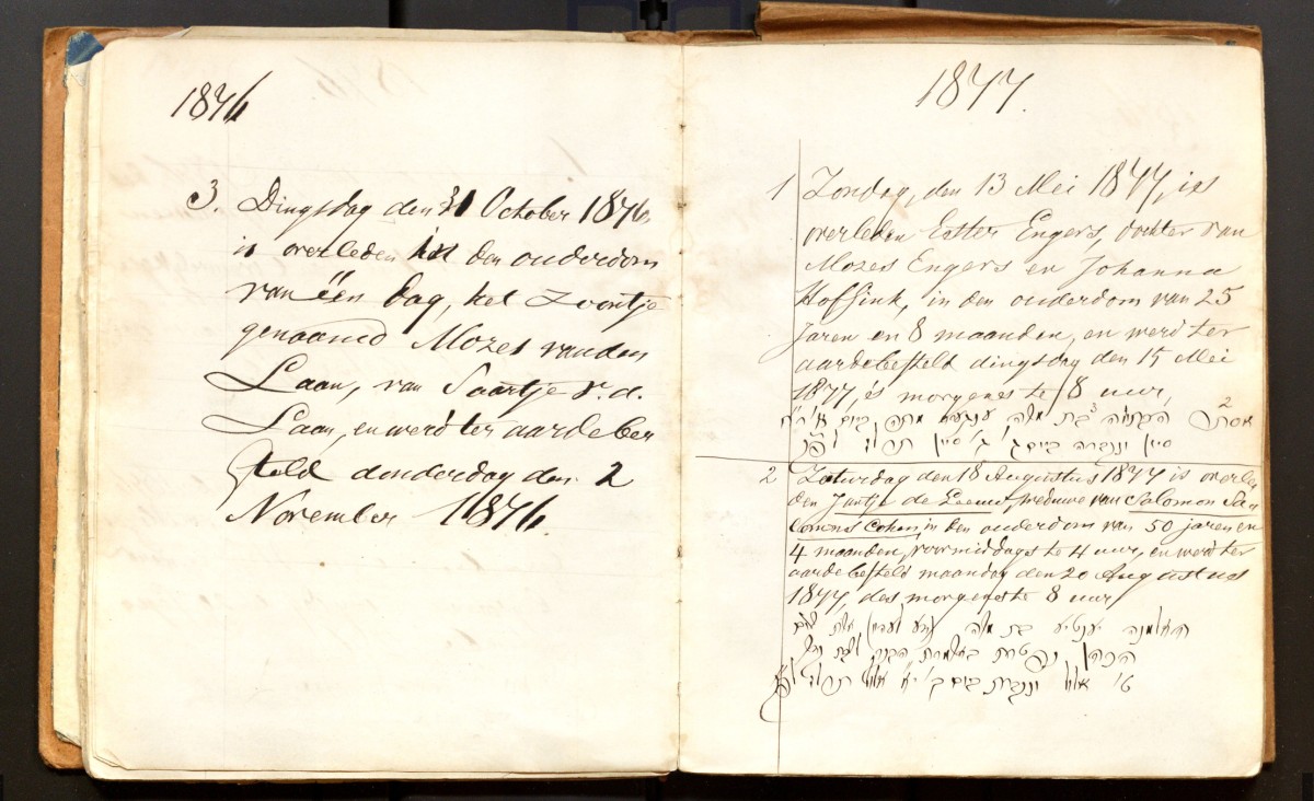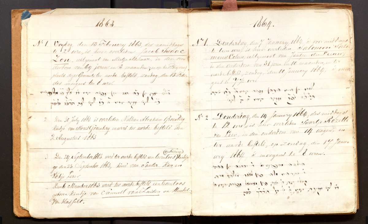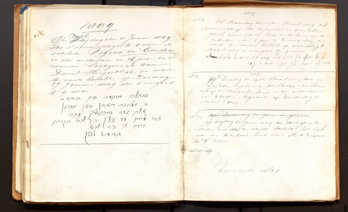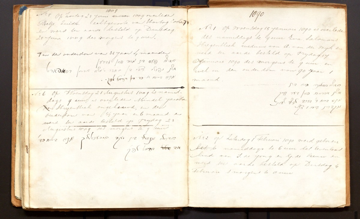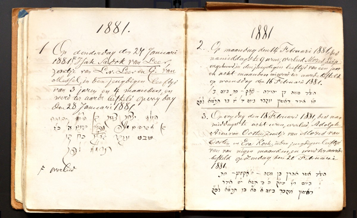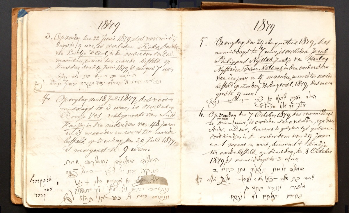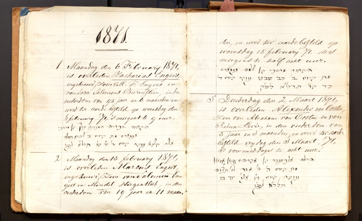De gescande inhoud van het oudste begrafenisregister, dat zich in het Drents Archief bevindt.
