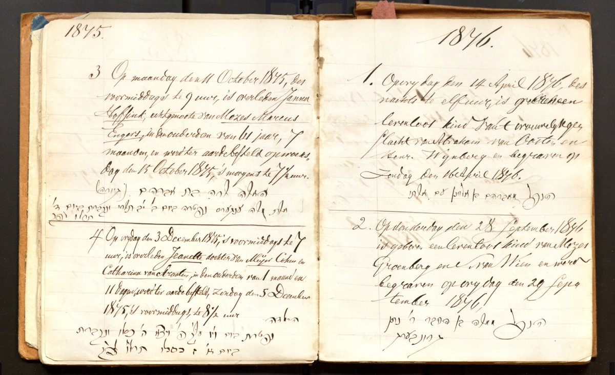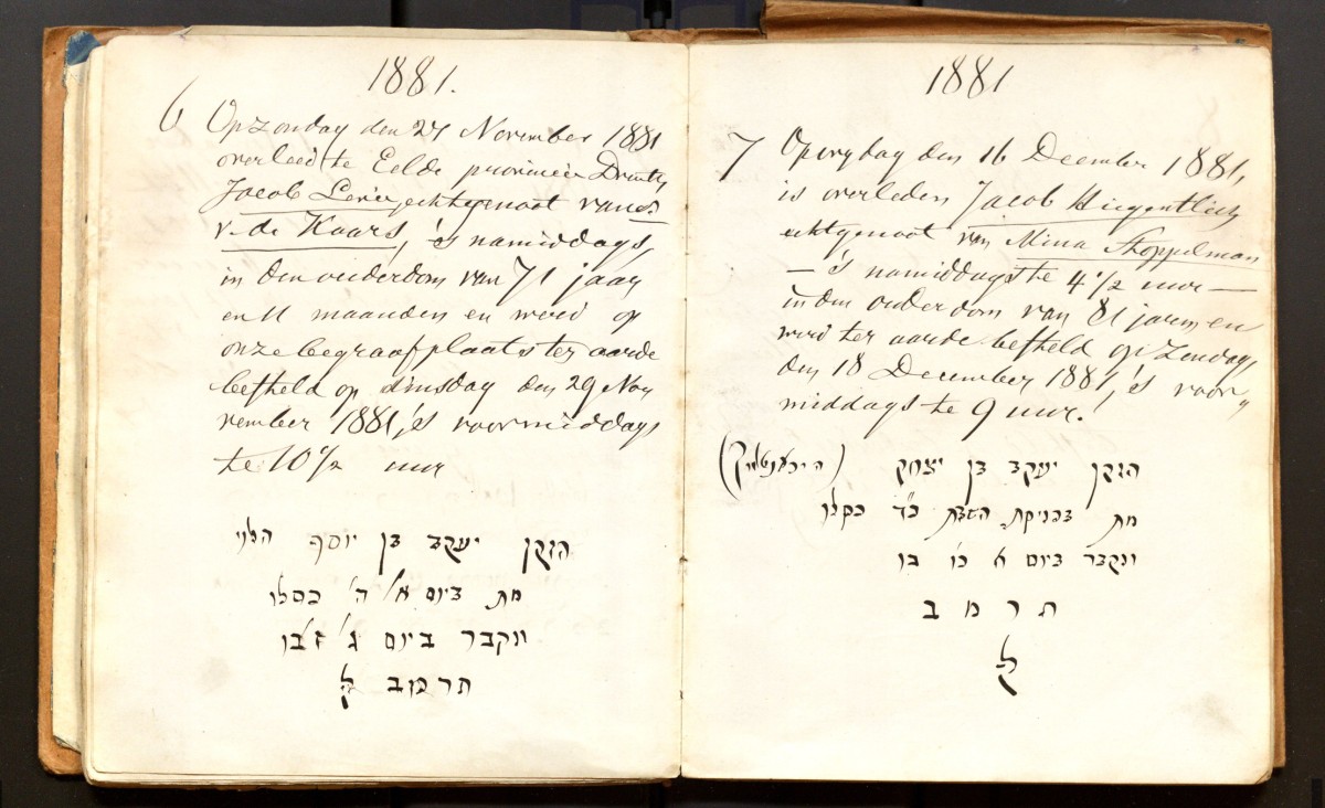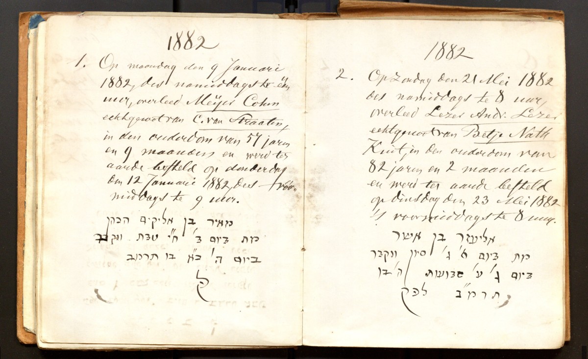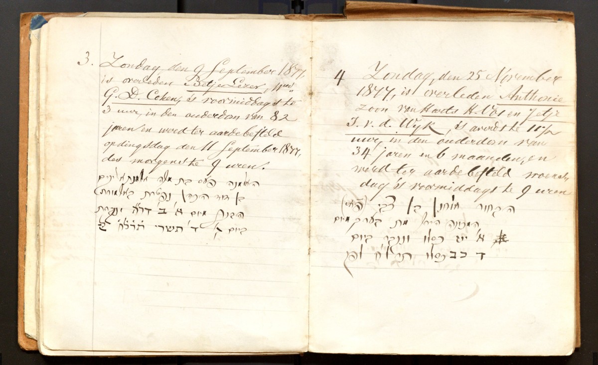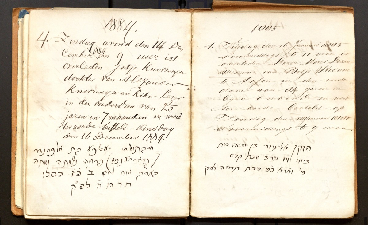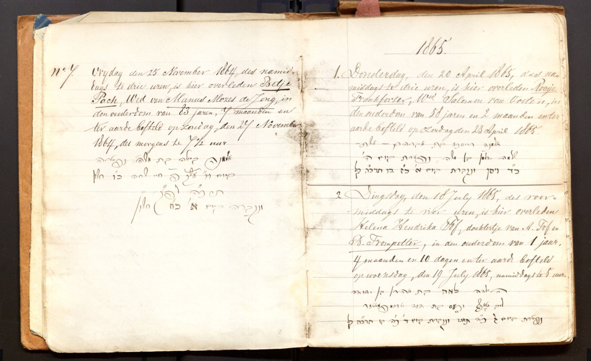 De gescande inhoud van het oudste begrafenisregister, dat zich in het Drents Archief bevindt.