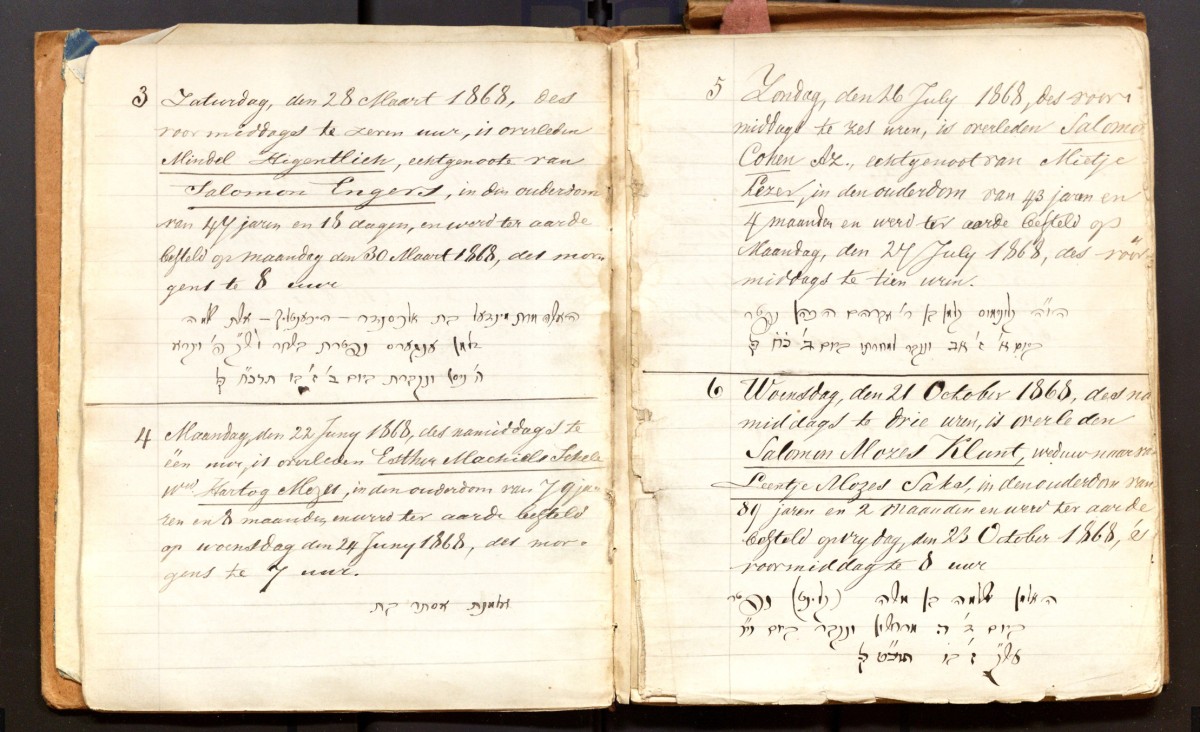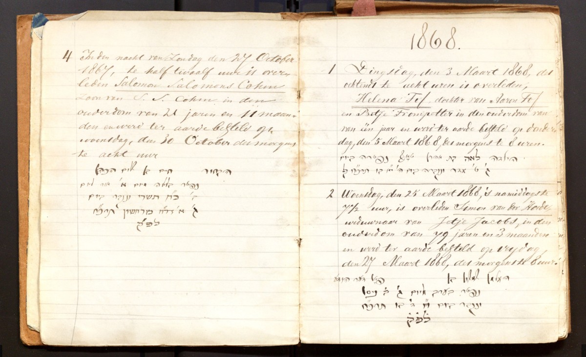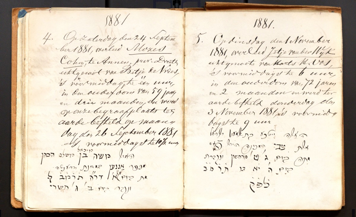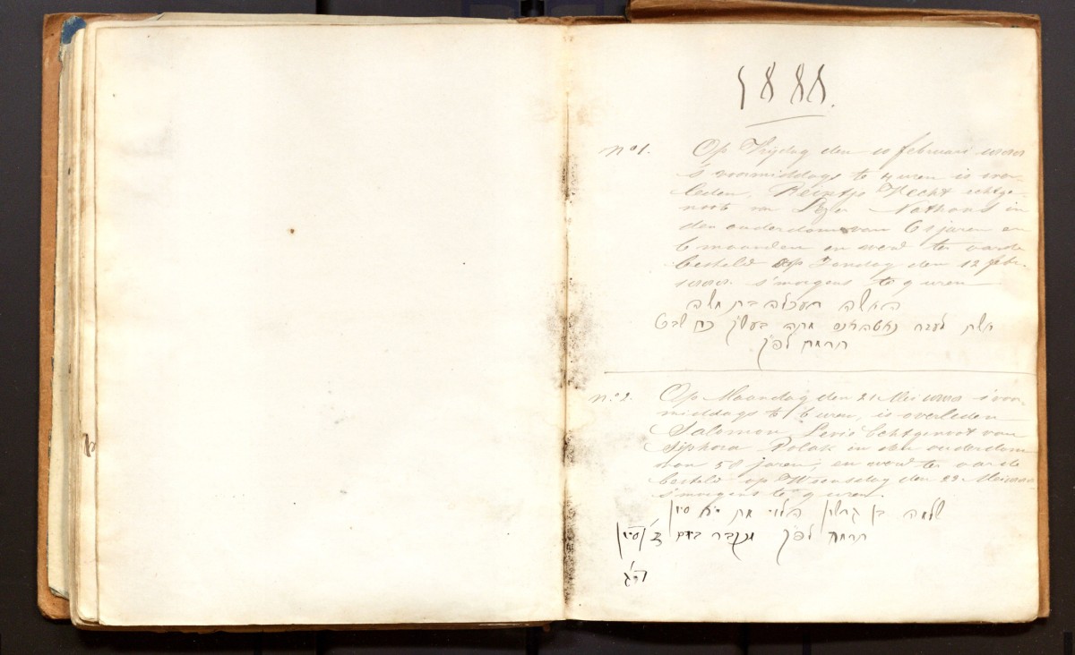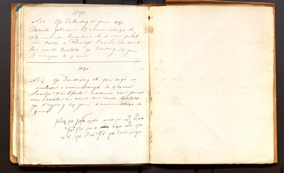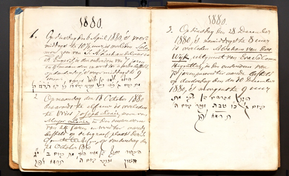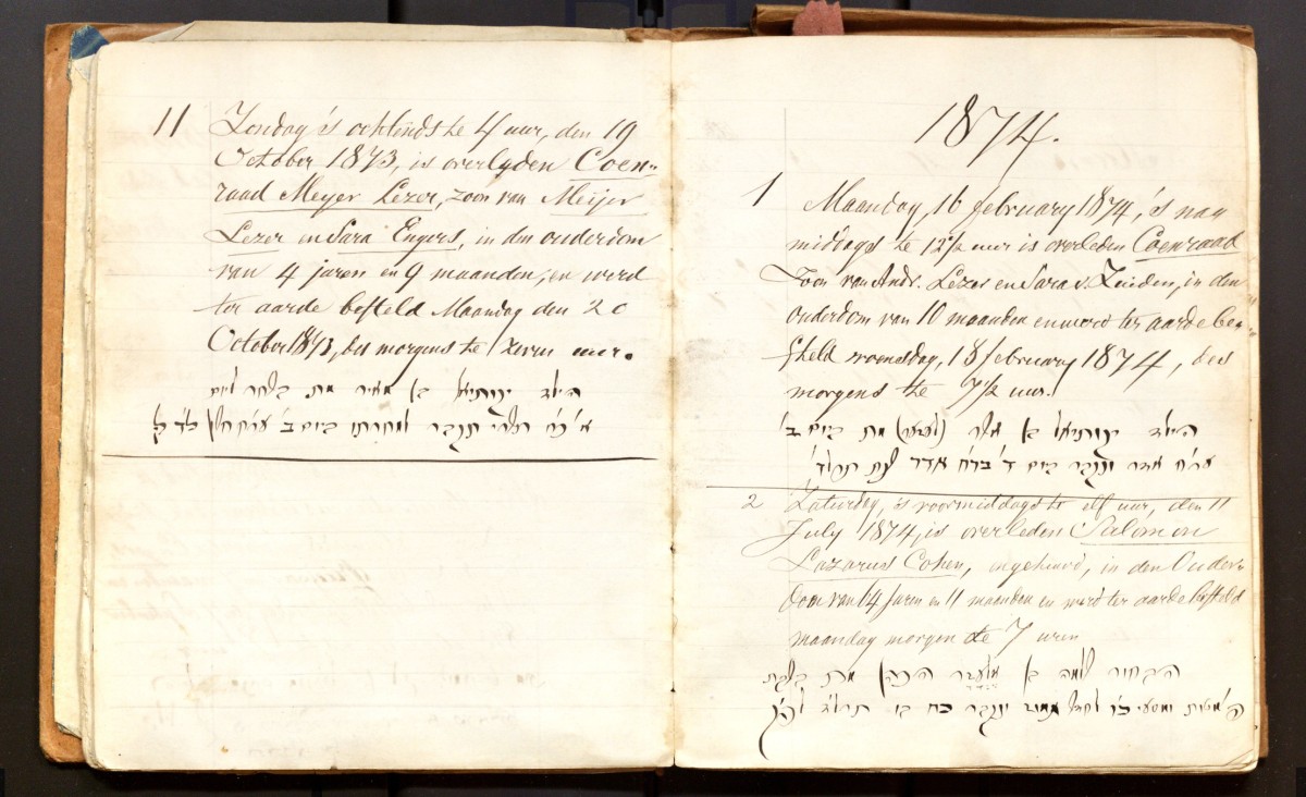 De gescande inhoud van het oudste begrafenisregister, dat zich in het Drents Archief bevindt.