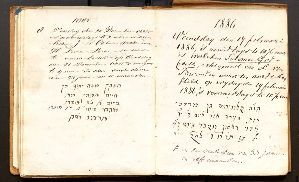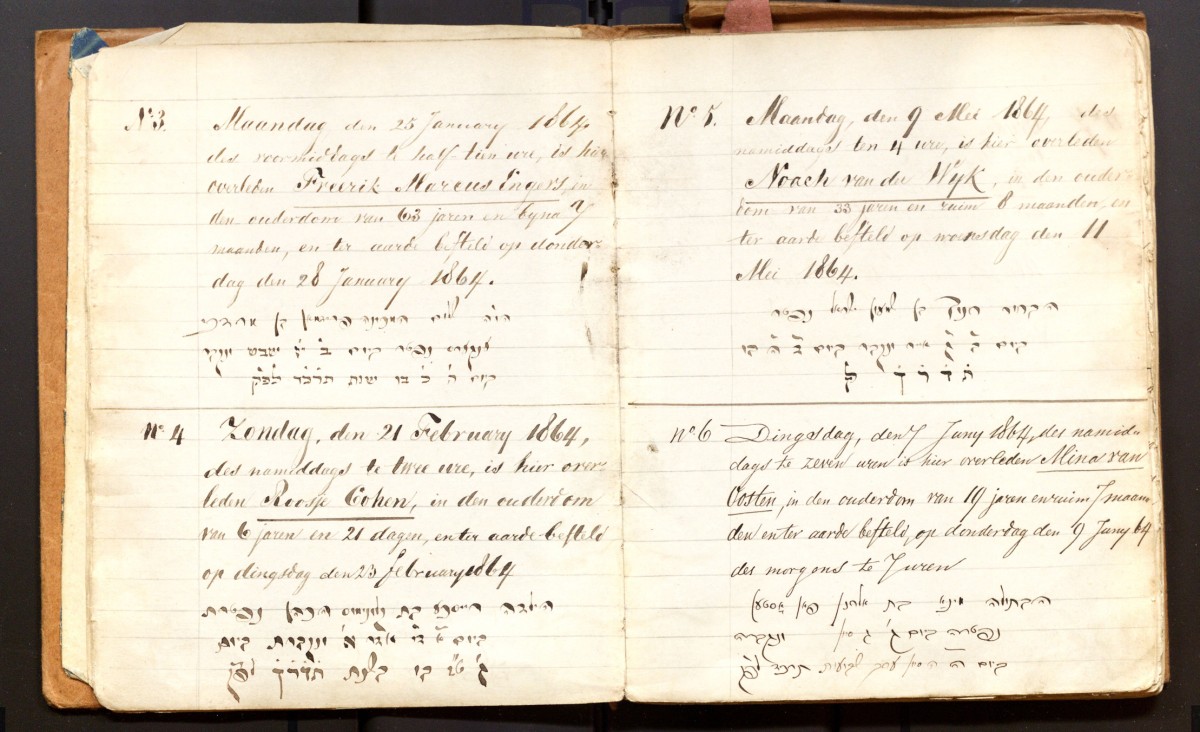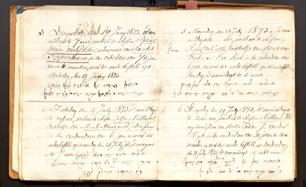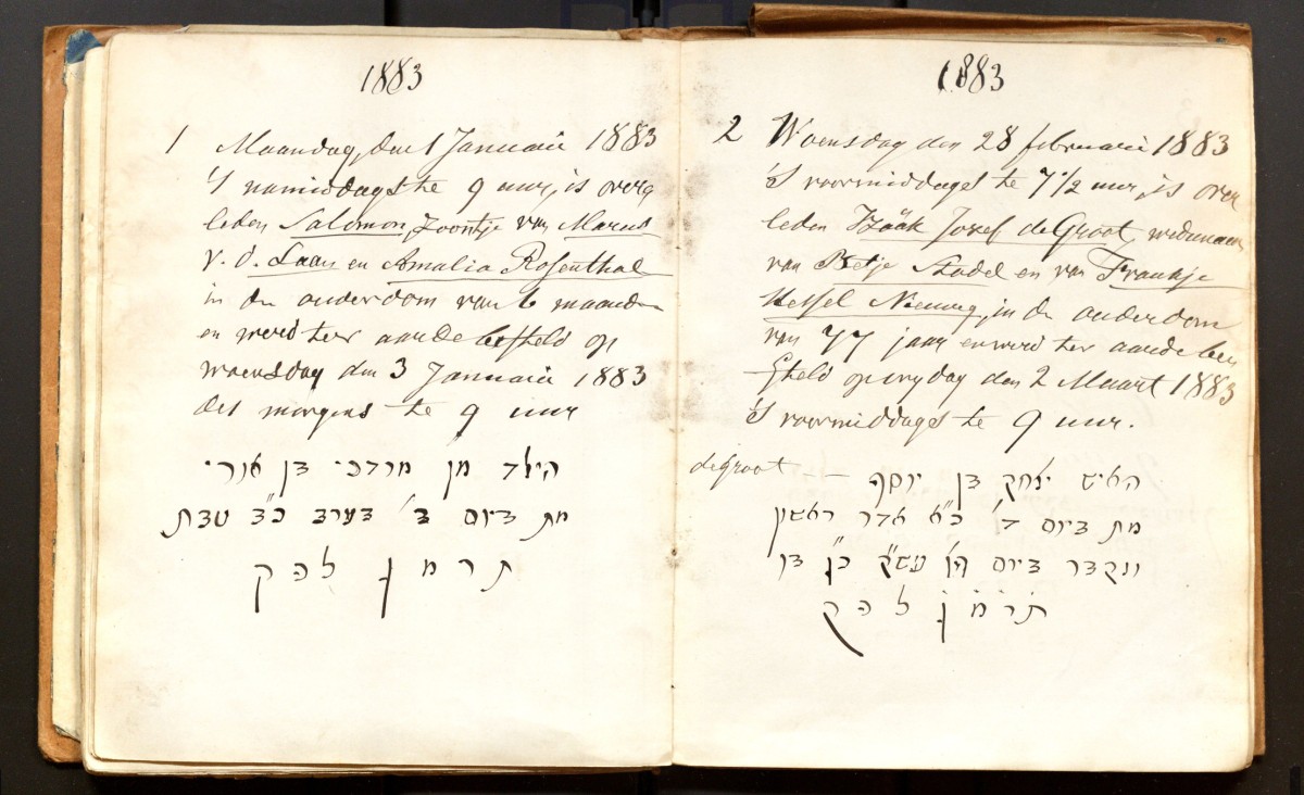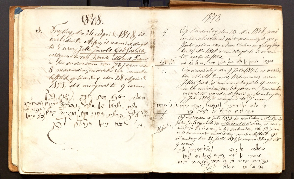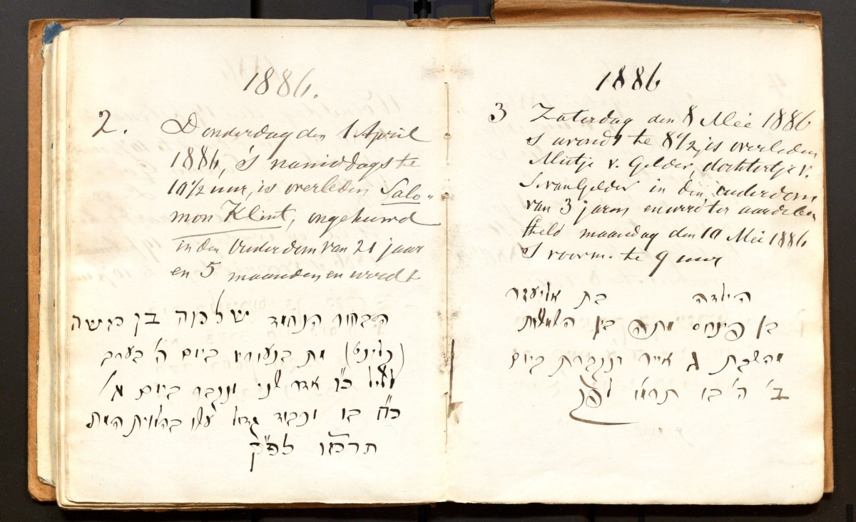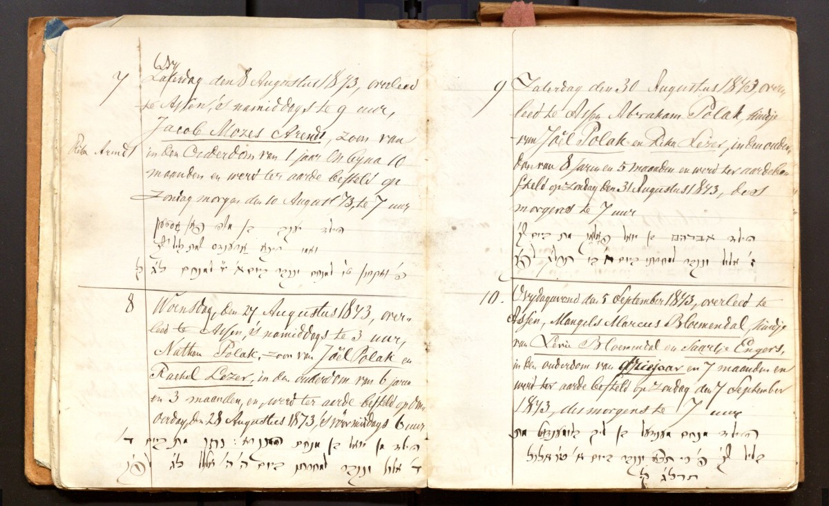 De gescande inhoud van het oudste begrafenisregister, dat zich in het Drents Archief bevindt.