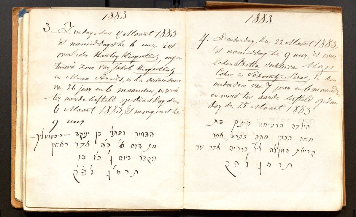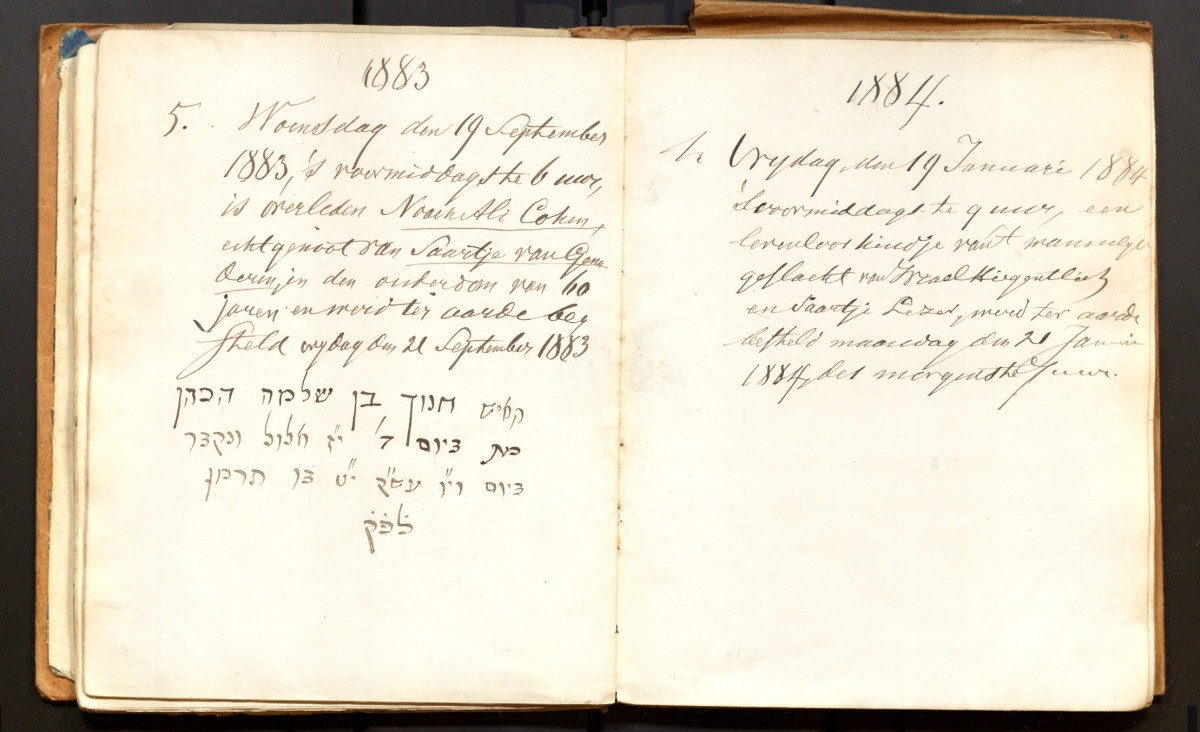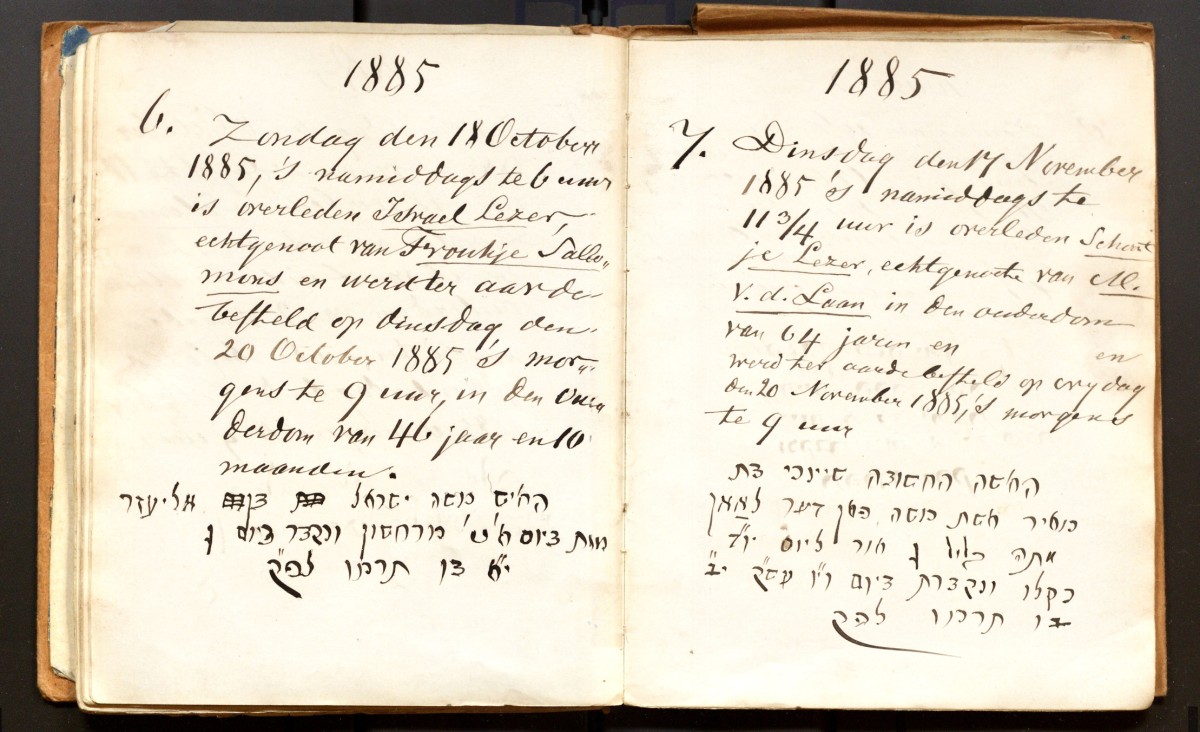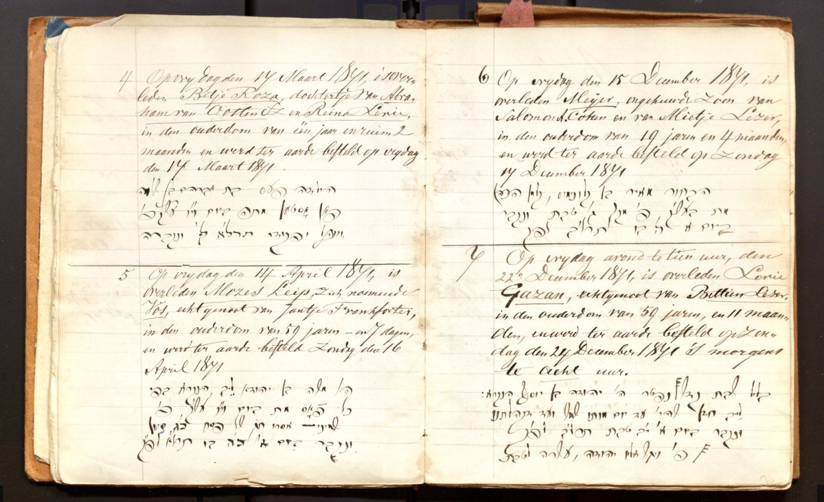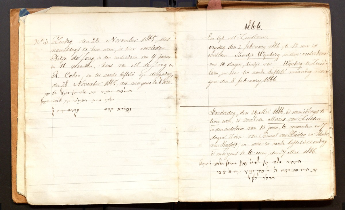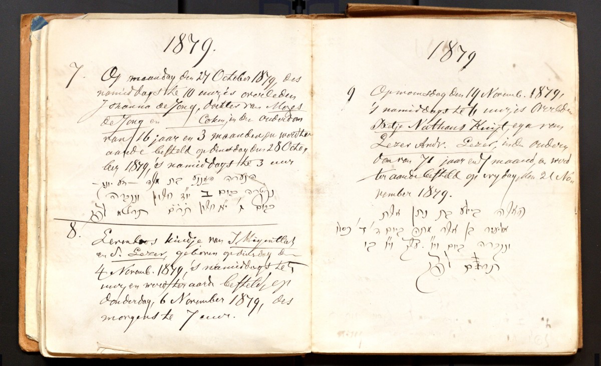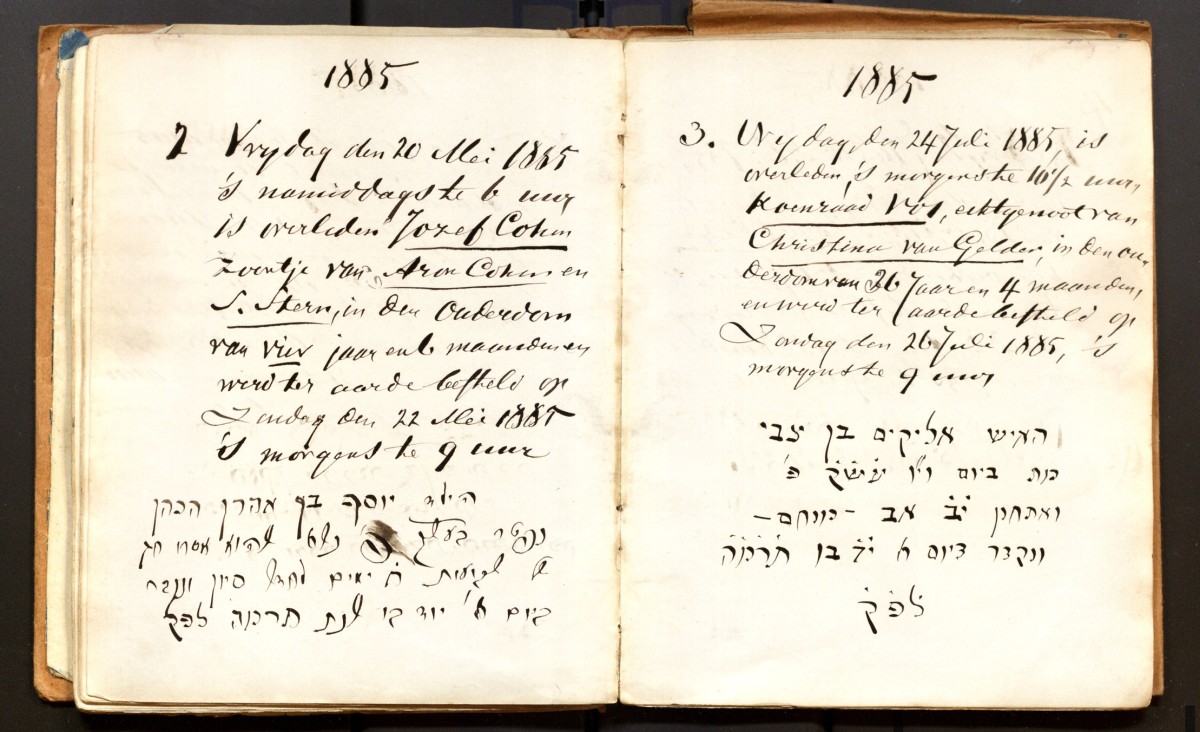 De gescande inhoud van het oudste begrafenisregister, dat zich in het Drents Archief bevindt.