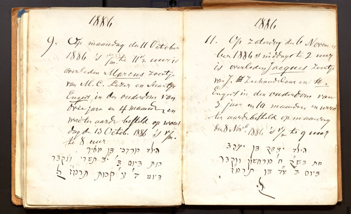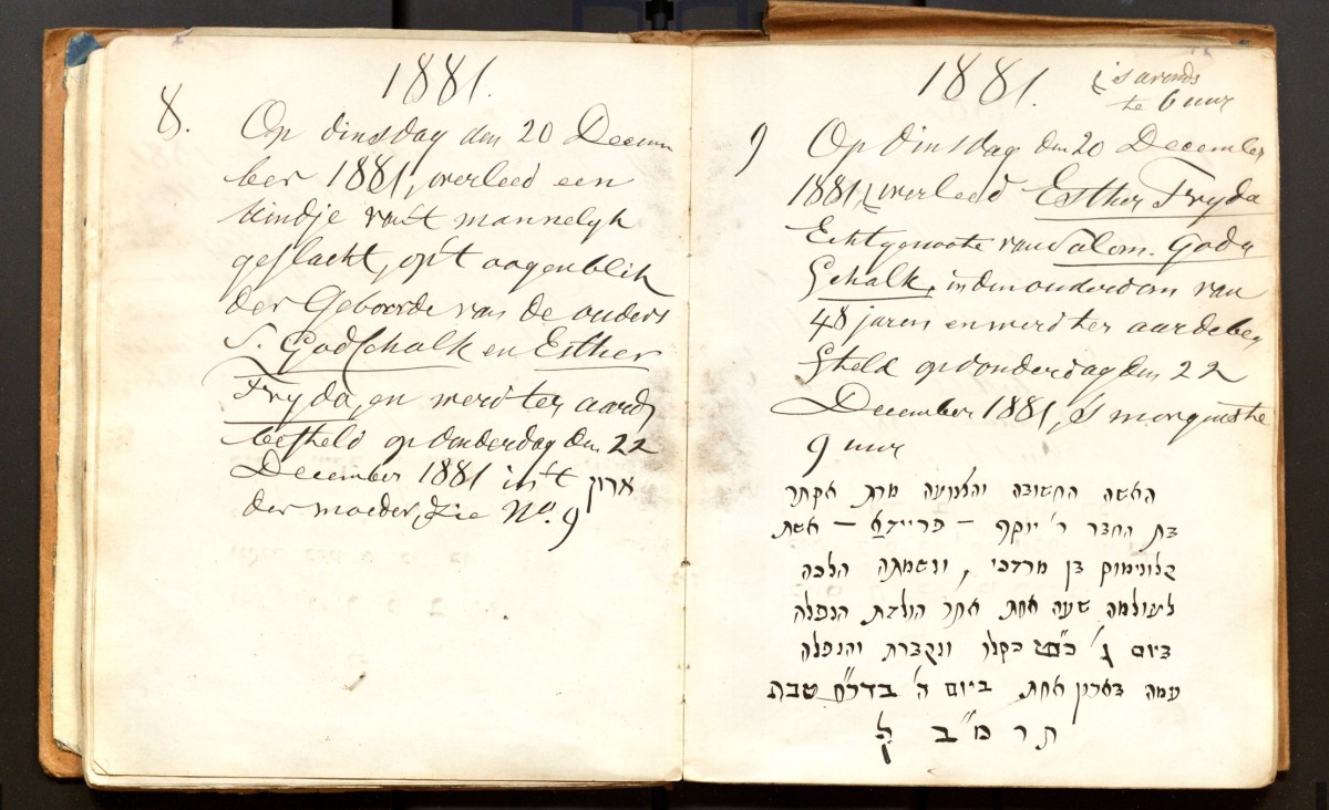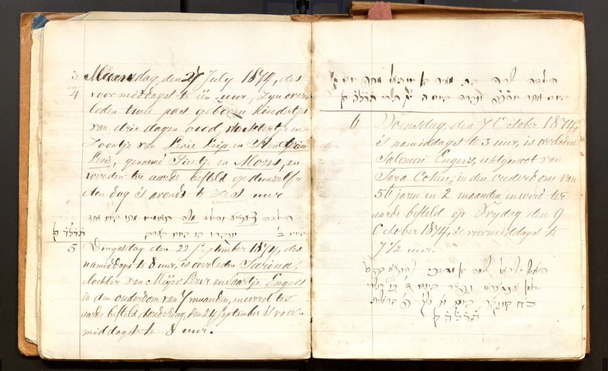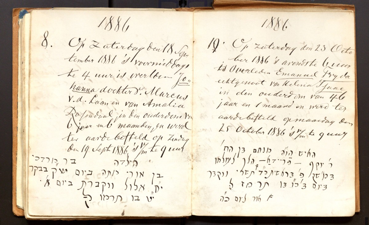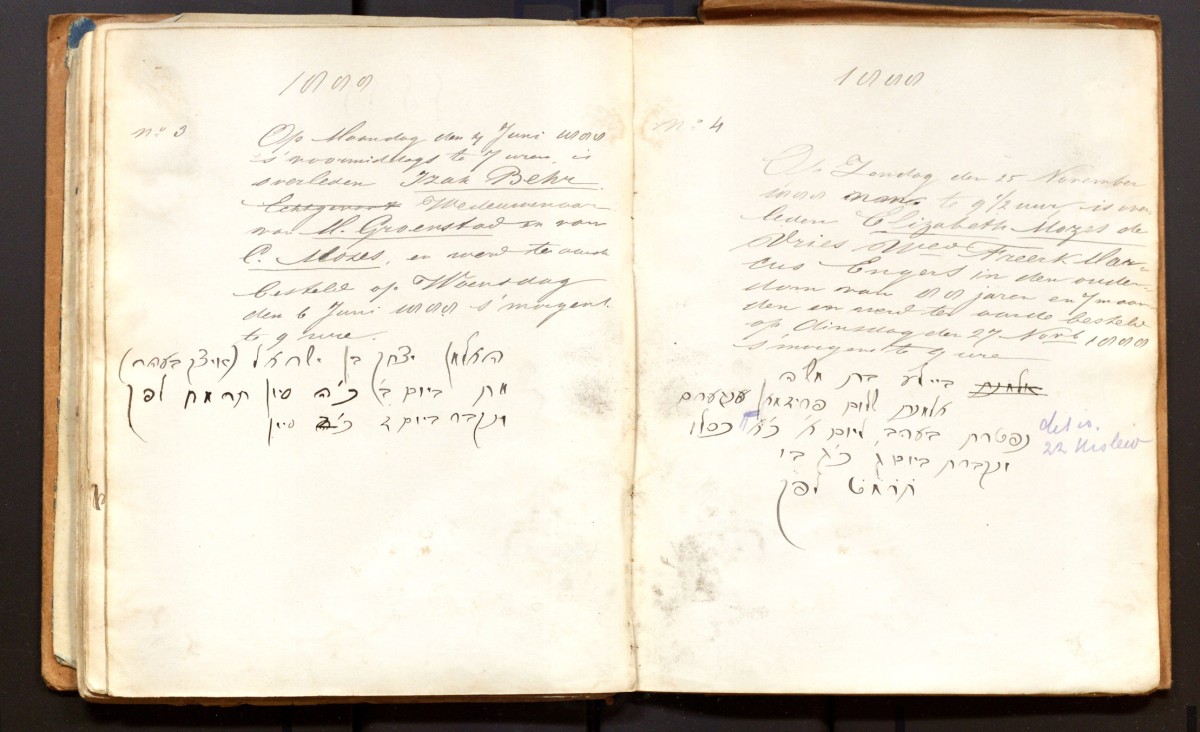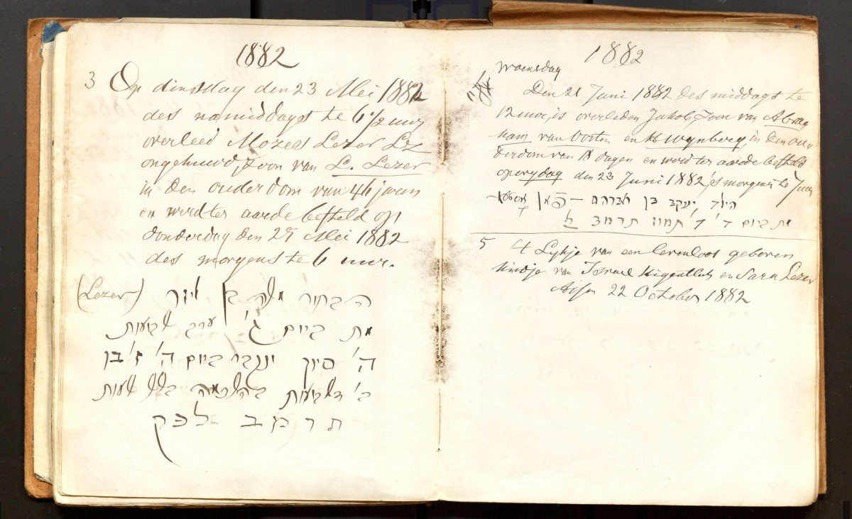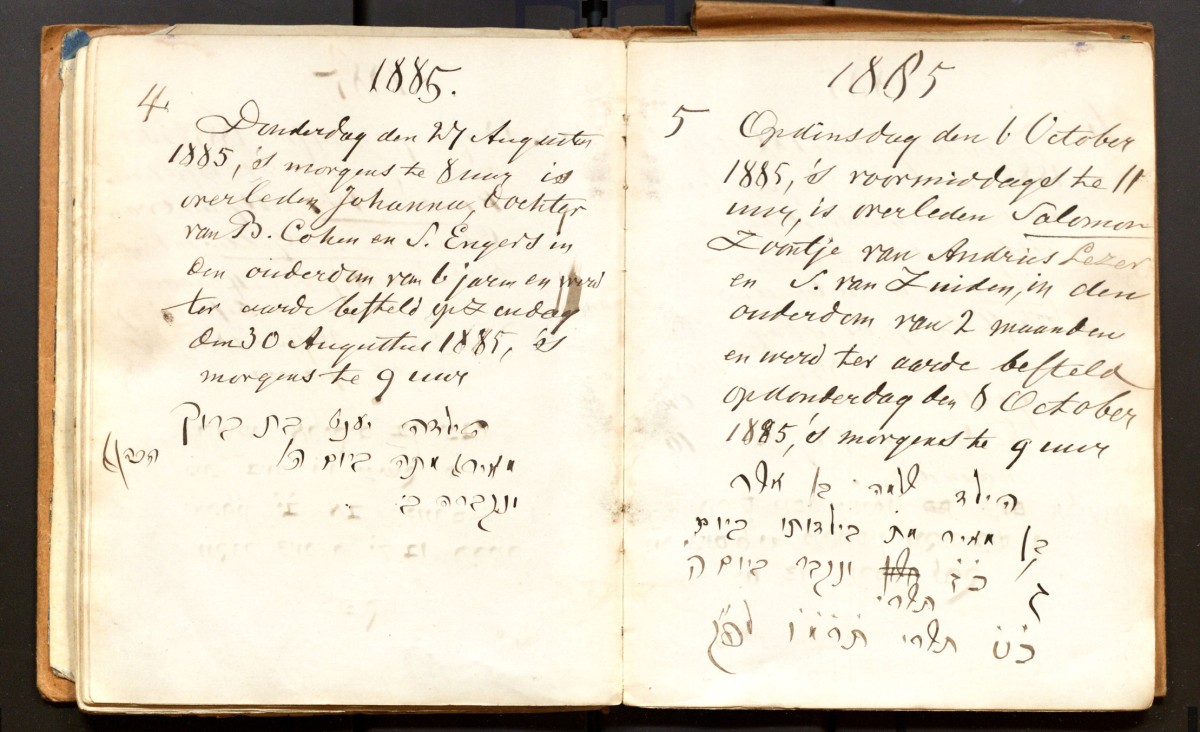 De gescande inhoud van het oudste begrafenisregister, dat zich in het Drents Archief bevindt.